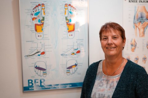 Ik heb ook nog een opleiding gevolgd, samen met mijn man, tot voetreflexoloog. Dit hebben we gedaan bij de BER. Momenteel voer ik dit beroep niet meer uit en ben ik actief in de praktijk als voetdeskundige, secretaresse/telefoniste en help ik bij de productie van de zolen. Heeft u vragen over mij of mijn werk kunt u gerust een keer een afspraak maken voor meer informatie.